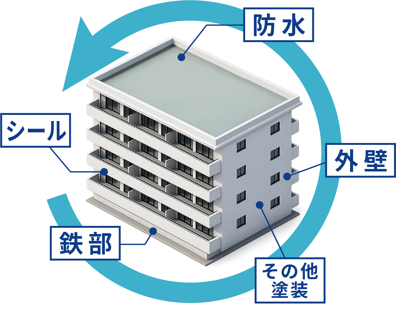A. 外壁・屋根・防水・シーリングなどの外回り修繕に加え、定期的な点検やメンテナンスも含めてご提案いたします。