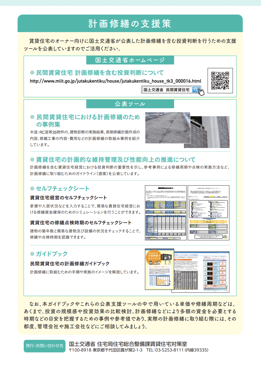 こうした背景から国土交通省も、建物を長く健全に維持する方法として、計画的に修繕を行う「計画修繕」を推奨しています。